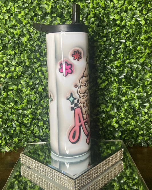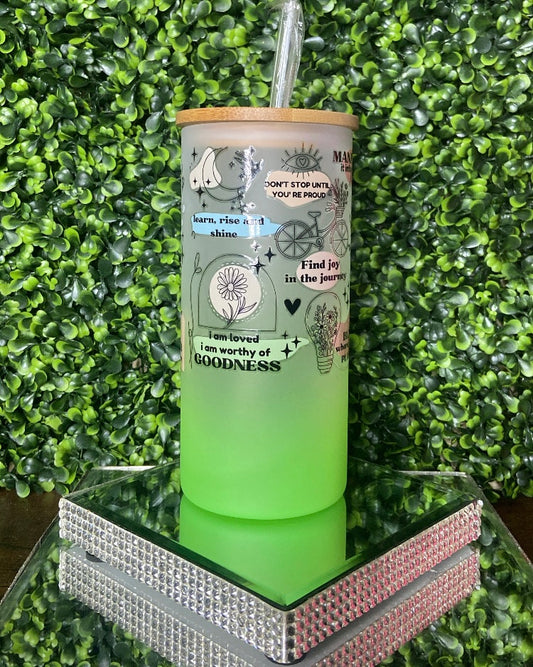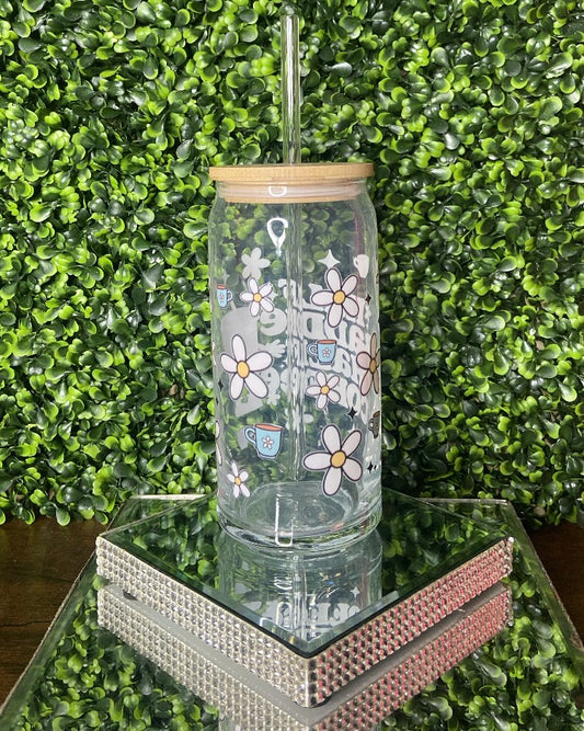 "Floral Brain Mental Health Matters" Glass Tumbler