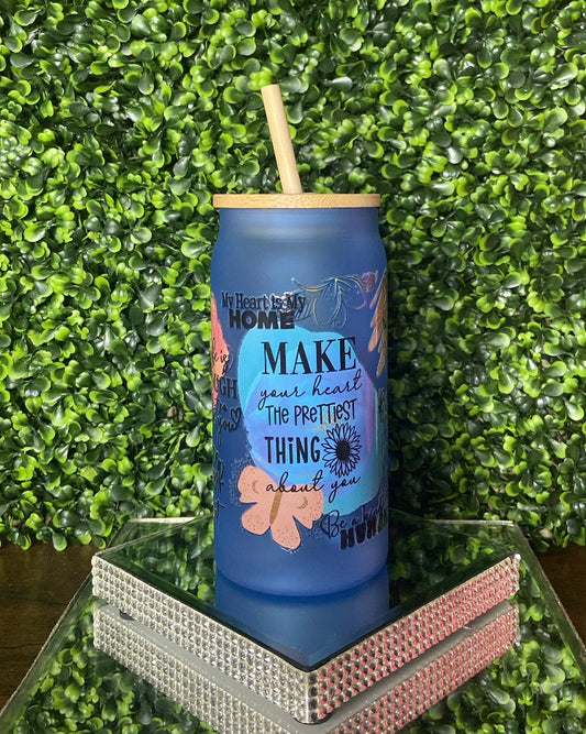 "Floral Brain Mental Health Matters" Glass Tumbler
